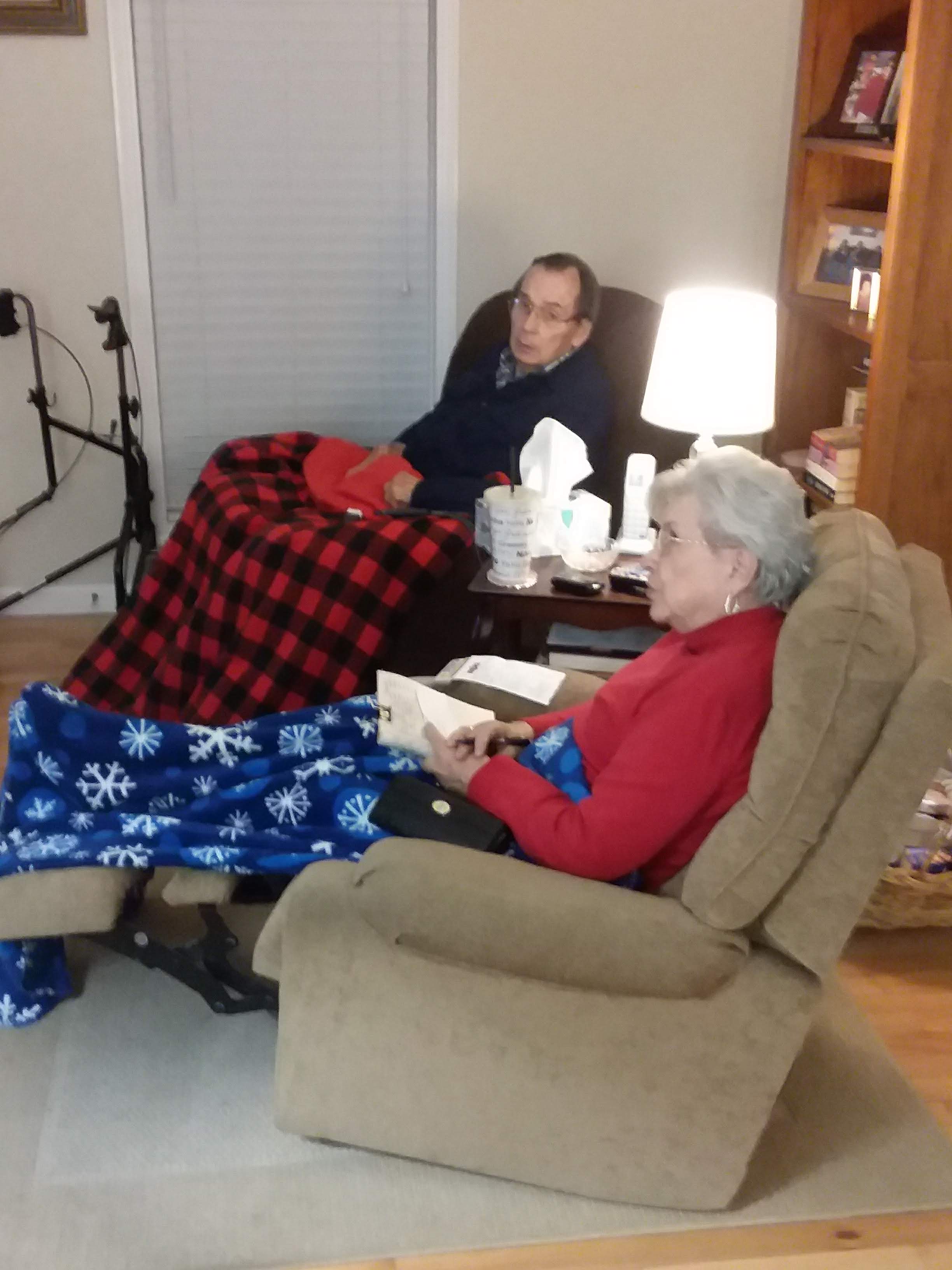 Mom decided that routine was very important as Dad became more frail. In addition to taking him out almost every day, she made sure they went to church on Sunday mornings as often as possible. I moved in with them around 2016, and tried not to upset their established schedule. Their days consisted of errands around town, eating out now and then, and watching TV and movies. I became the designated cook and tried to keep things simple but interesting. As Dad’s health began to fail, I helped Mom as much as I could, but as always, she tended his every need.